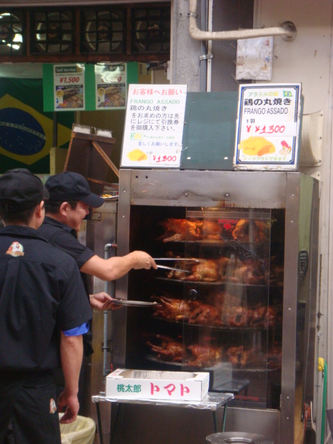 Como muitos de voces ja sabem, Aichi e a provincia onde milhares de brasileiros e peruanos vivem. Com a crise, muita gente esta pegando aquela ajuda do governo e voltando para o Brasil. Porem, ainda temos muuuuuitos patricios aqui!E, claro que com tantos brasileiros aqui, nao podiam faltar as lojas de produtos brasileiros e os restaurantes. Este aqui, fica em Nagoya, em um bairro bem popular. Alem do frango assado que nem das padarias do nosso Brasil varonil, eles tambem tem um maravilhoso self-service, onde toda hora chega um prato diferente! Esse ai tah aprovadissimo!